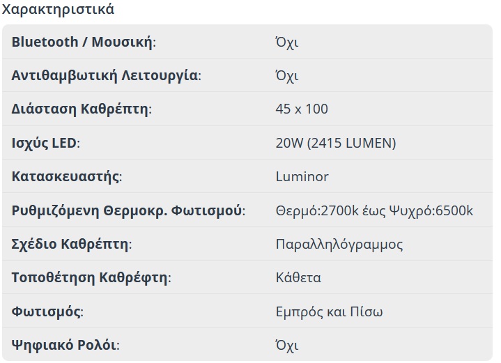 Καθρέπτης SOLANO, 45x100 εκ. φωτιζόμενος LED Εμπρός - Πίσω, LUMINOR
